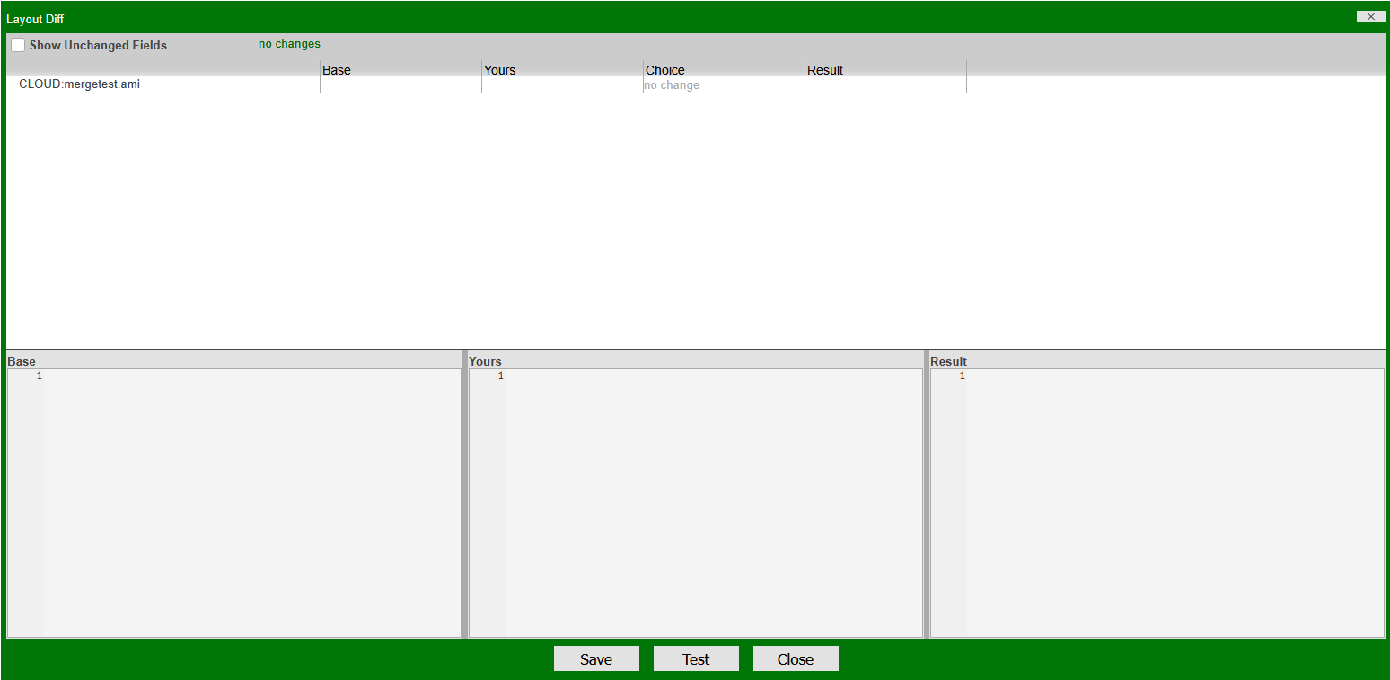 The top of the tool contains a summary of changes ("no changes" in green). As there are no changes, the tool is not populated.