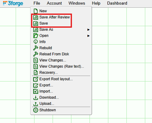 Clicking File->Save After Review will output the following window: